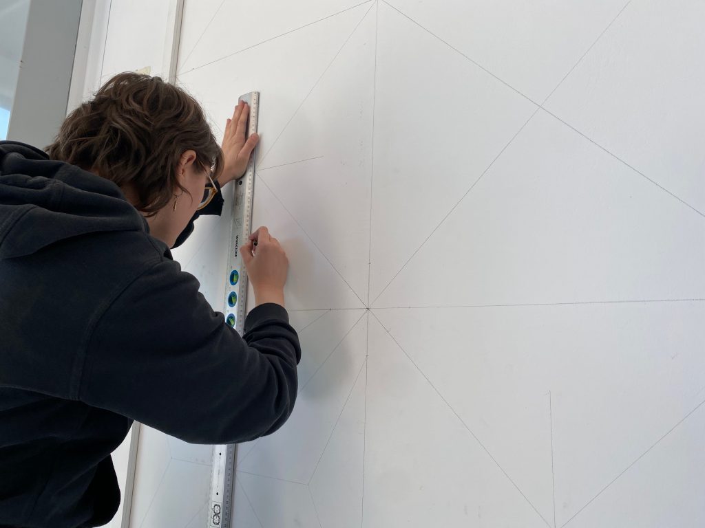 After three weeks of meticulous work—and around 400 meters of tape—the mural is finally complete. It has turned a once-plain entryway into an inspiring and welcoming space and connects it to a fraction of Potsdam’s architectural history.