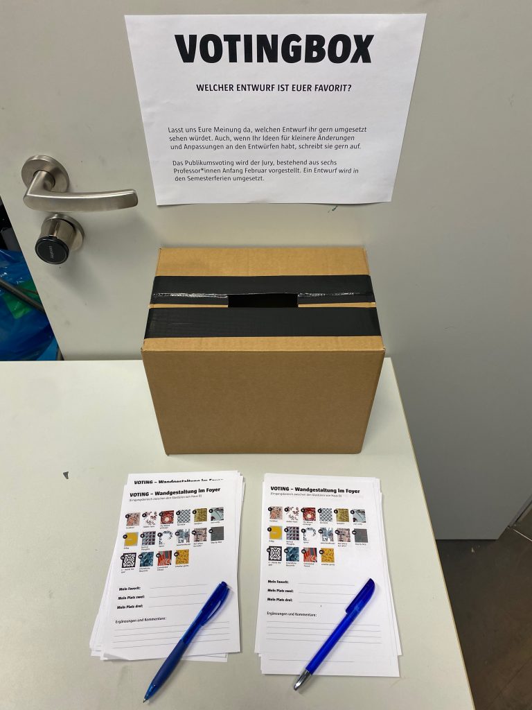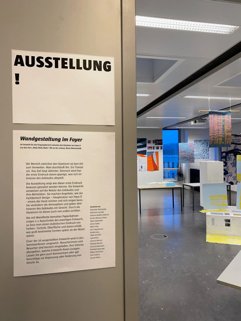 Exhibition of students’ proposals for a mural in the entrance of Haus D