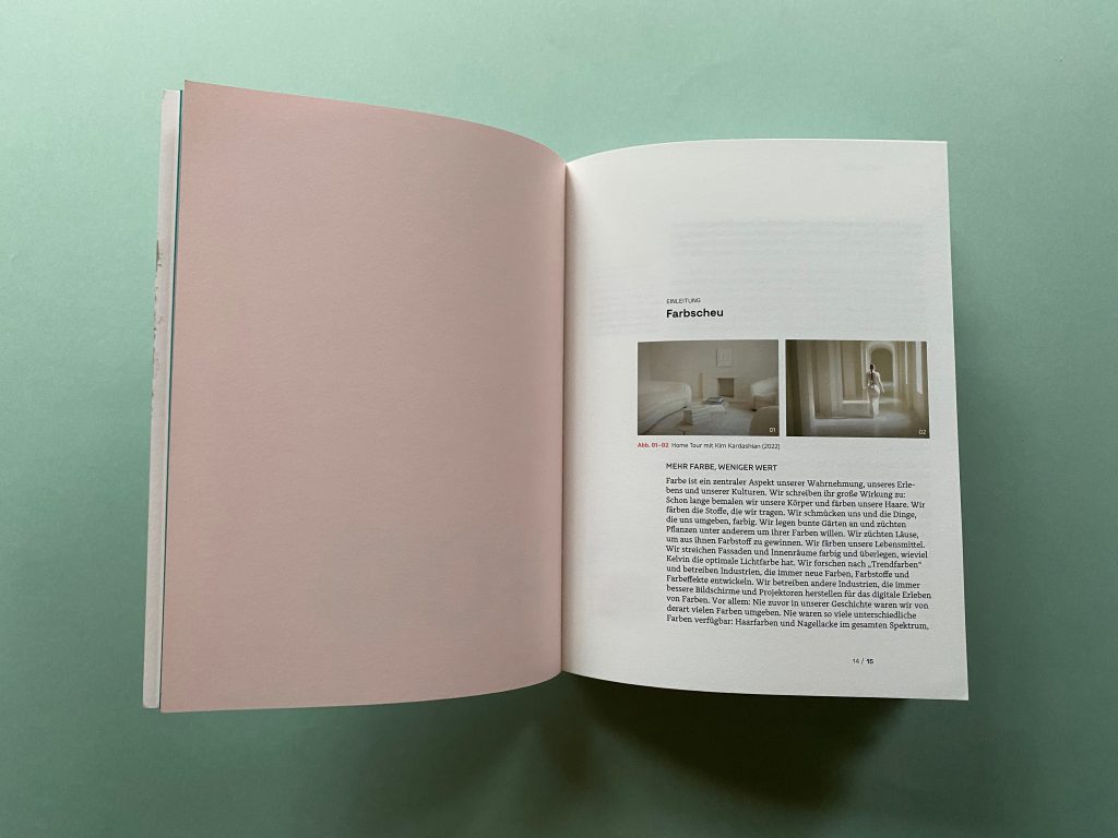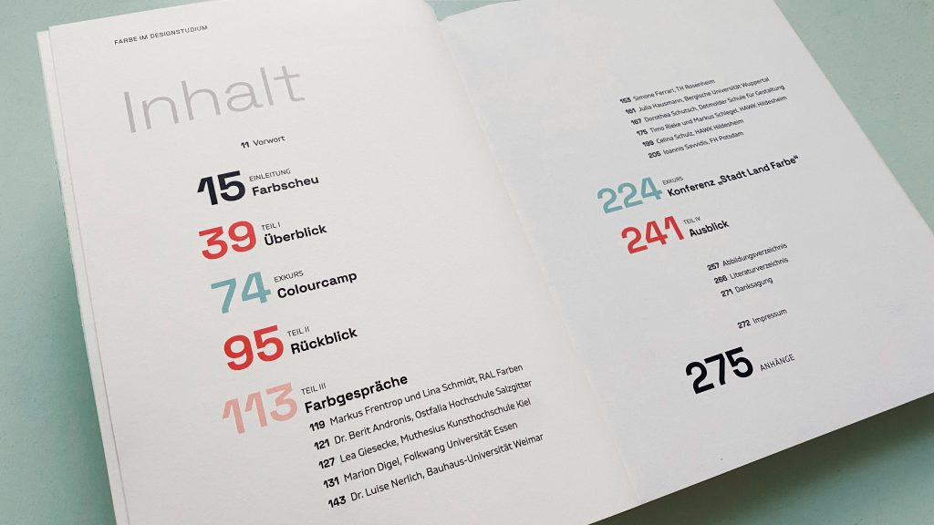Almost unexpectedly, they led to the development of a professional network, which already bore fruit this semester: Together with RAL Farben, an intense one-day workshop on color was conducted for design students with no prior knowledge. I intend to systematically test the many suggestions and ideas gathered during the course of my master’s thesis and integrate them into my color courses in the coming years, thereby developing an updated color curriculum. This work marks the beginning of that endeavor.