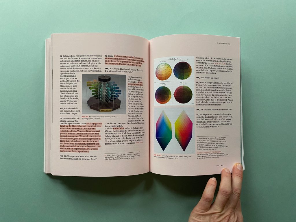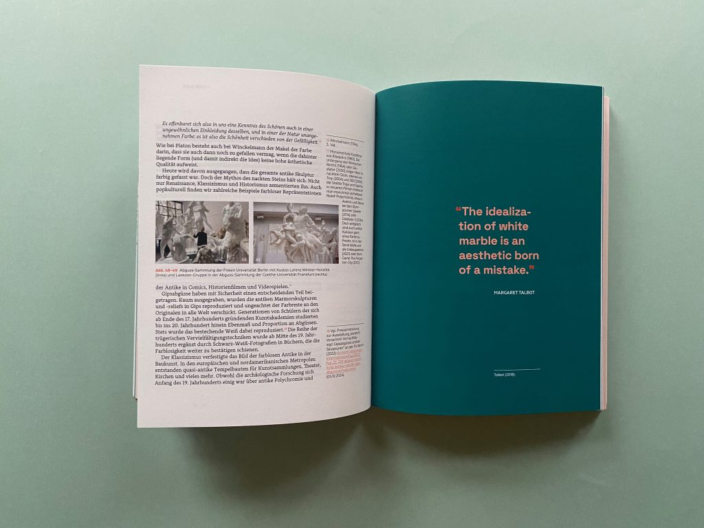 The second part looks at historical traces leading to our reservations about color. Various strands from Plato’s criticism of images to the false assumption of white (unpainted) Ancient Greece and Rome, or the debate about the priority of drawing over color (disegno vs. colore) are examined and put into perspective regarding the current teaching situation of color in design courses.