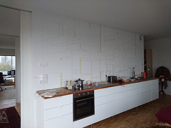 Two point perspective using a piece of string to align the tape