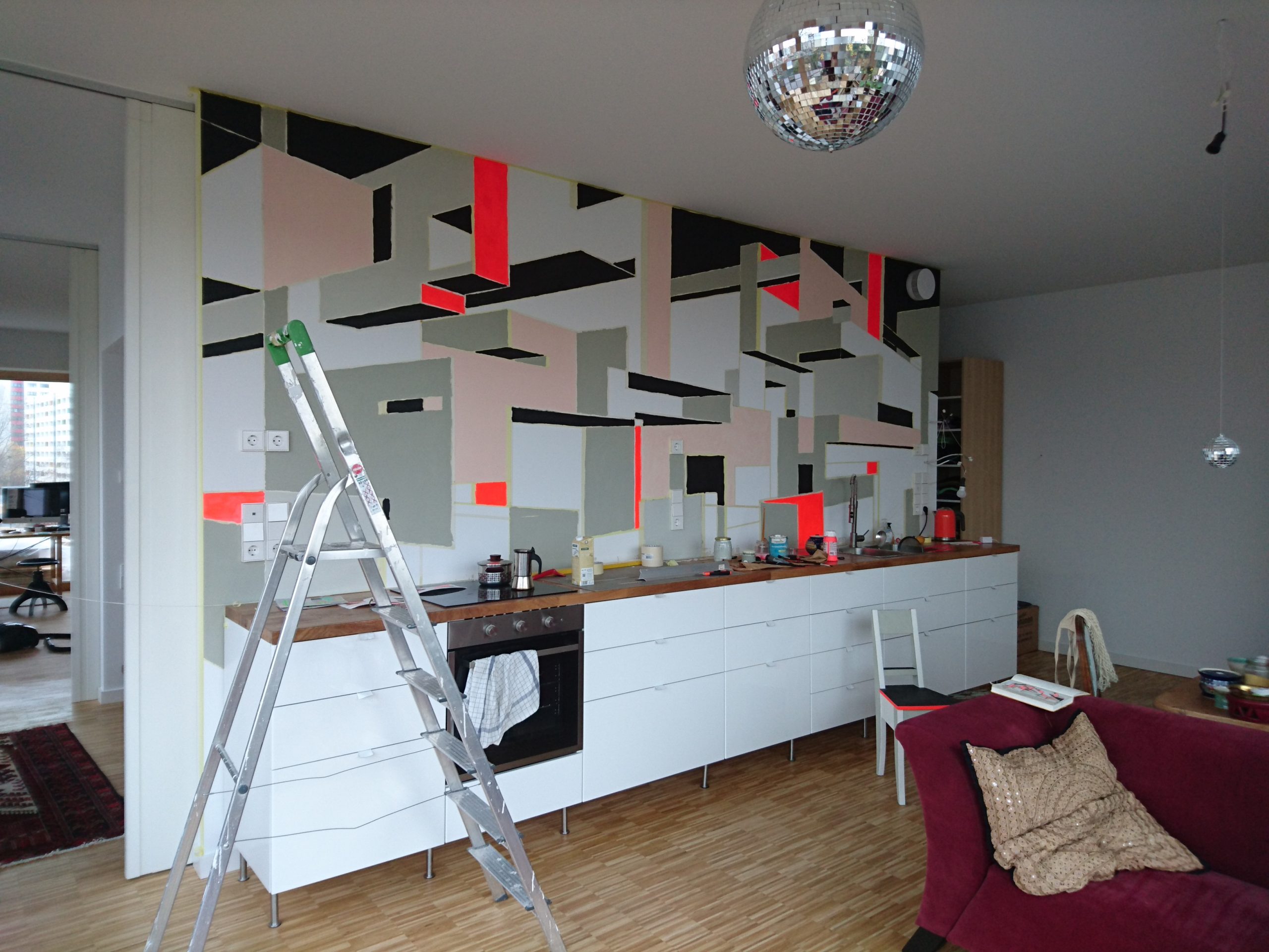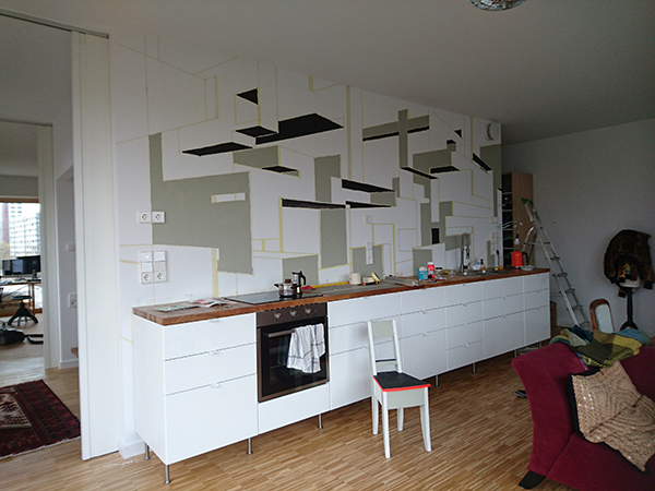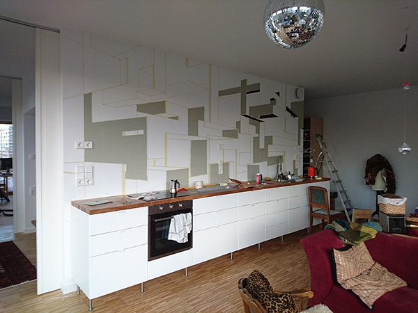 Acrylic and wall paint on wall