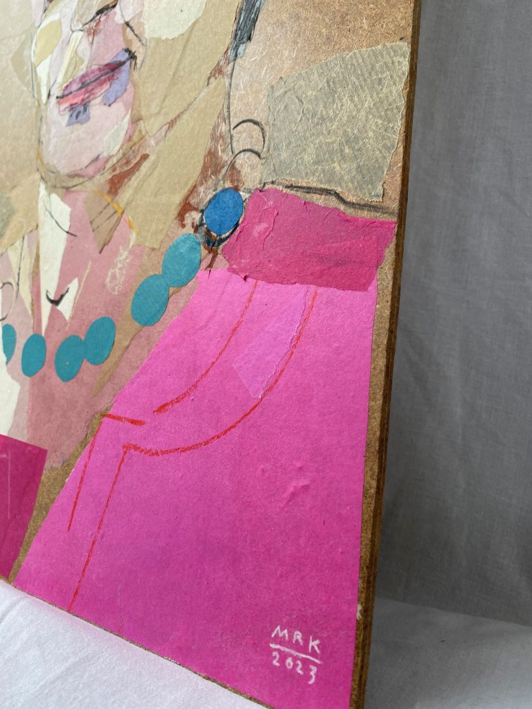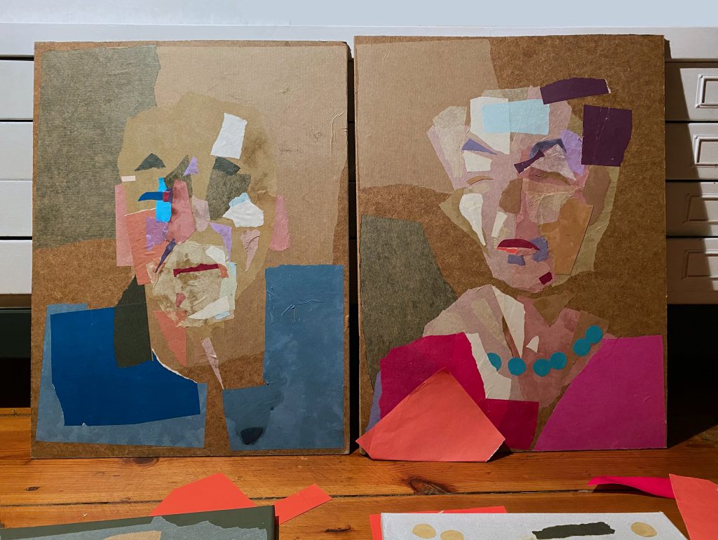 The following days at my studio I prepared backgrounds on fiberboard with colored papers to arrange the basic shapes, the coloring and the light.