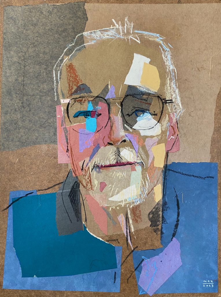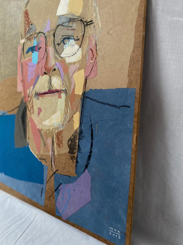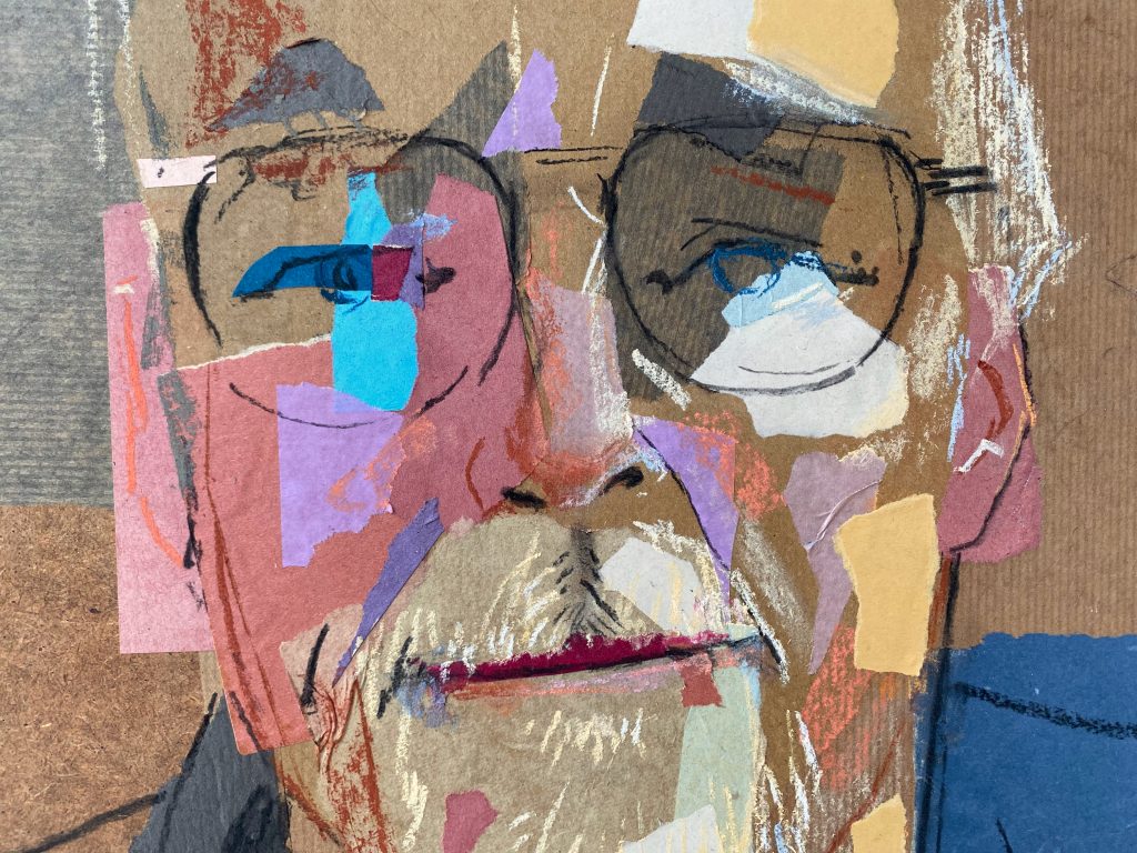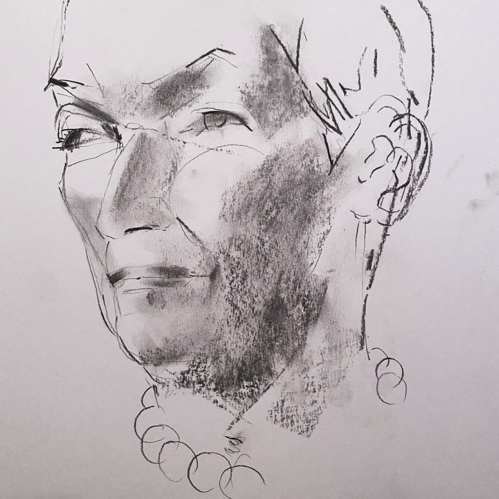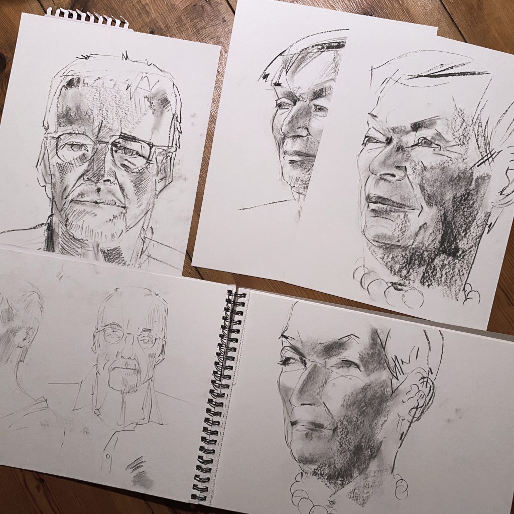 For the second live session with my two models I brought these prepared backgrounds and drew the portraits on top, using charcoal and pastel. This process took time, but my ambition was to really catch something from the people’s personality, some sort of spark—the eternal challenge in portraiture.